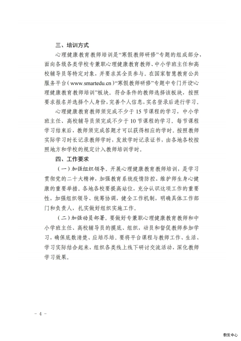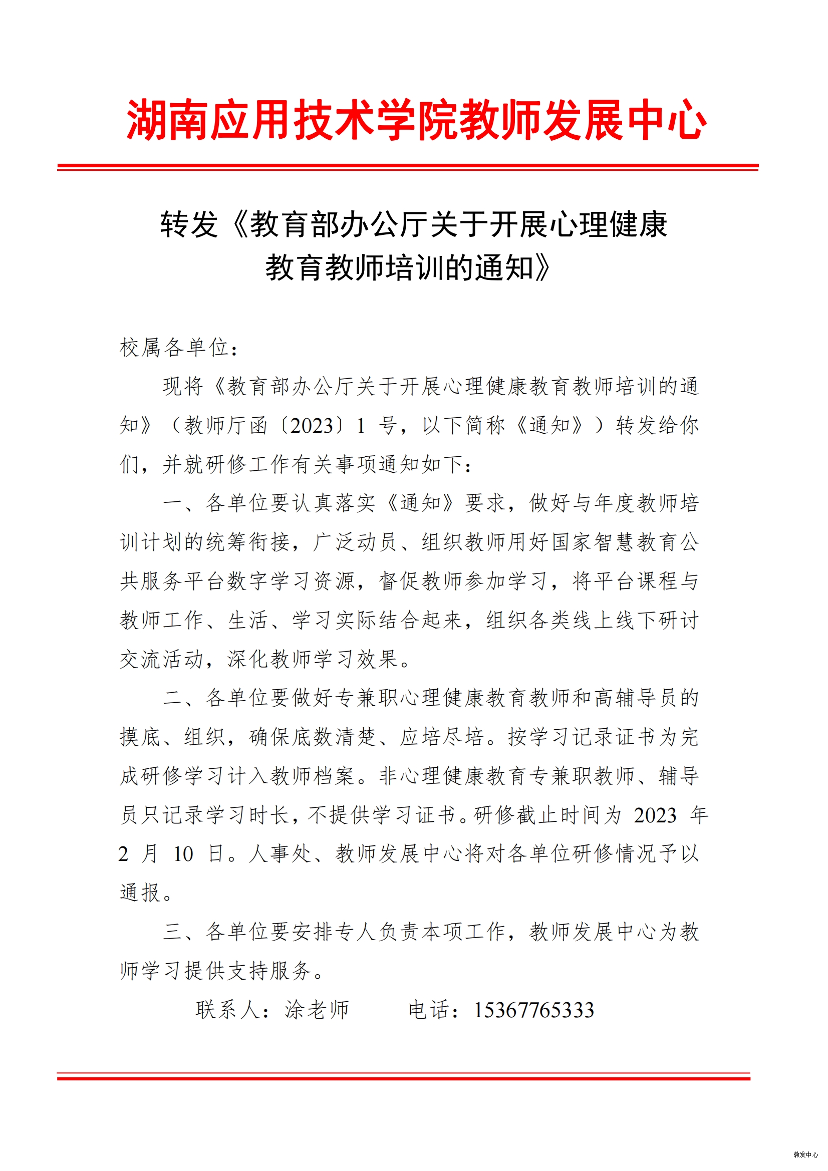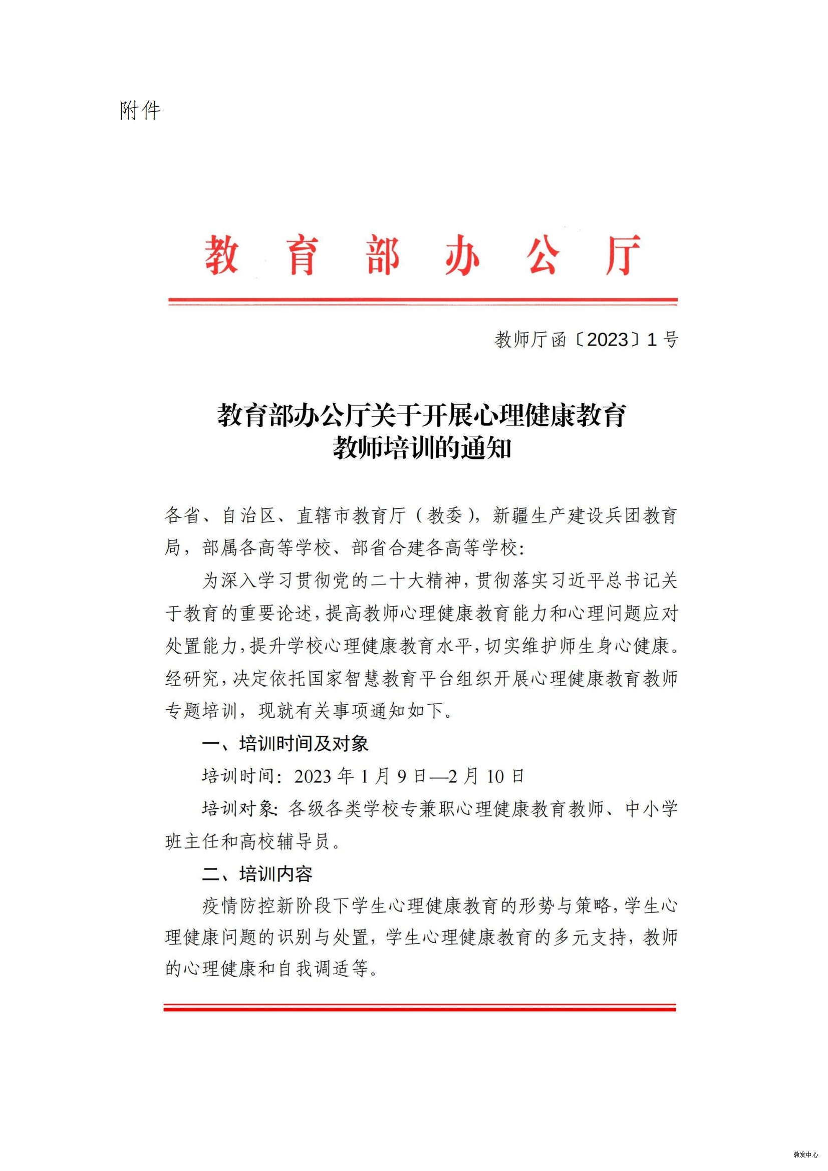 转发《教育部办公厅关于开展心理健康教育教师培训的通知》
