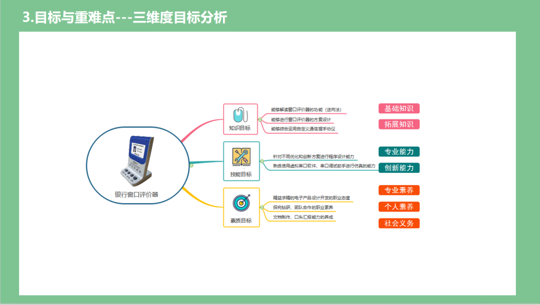 03针对学习目标部分,在确定12或16课时的整体目标时,我们需要综合考虑知识、能力和素养三个维度,以确保教学目标的全面性和针对性。