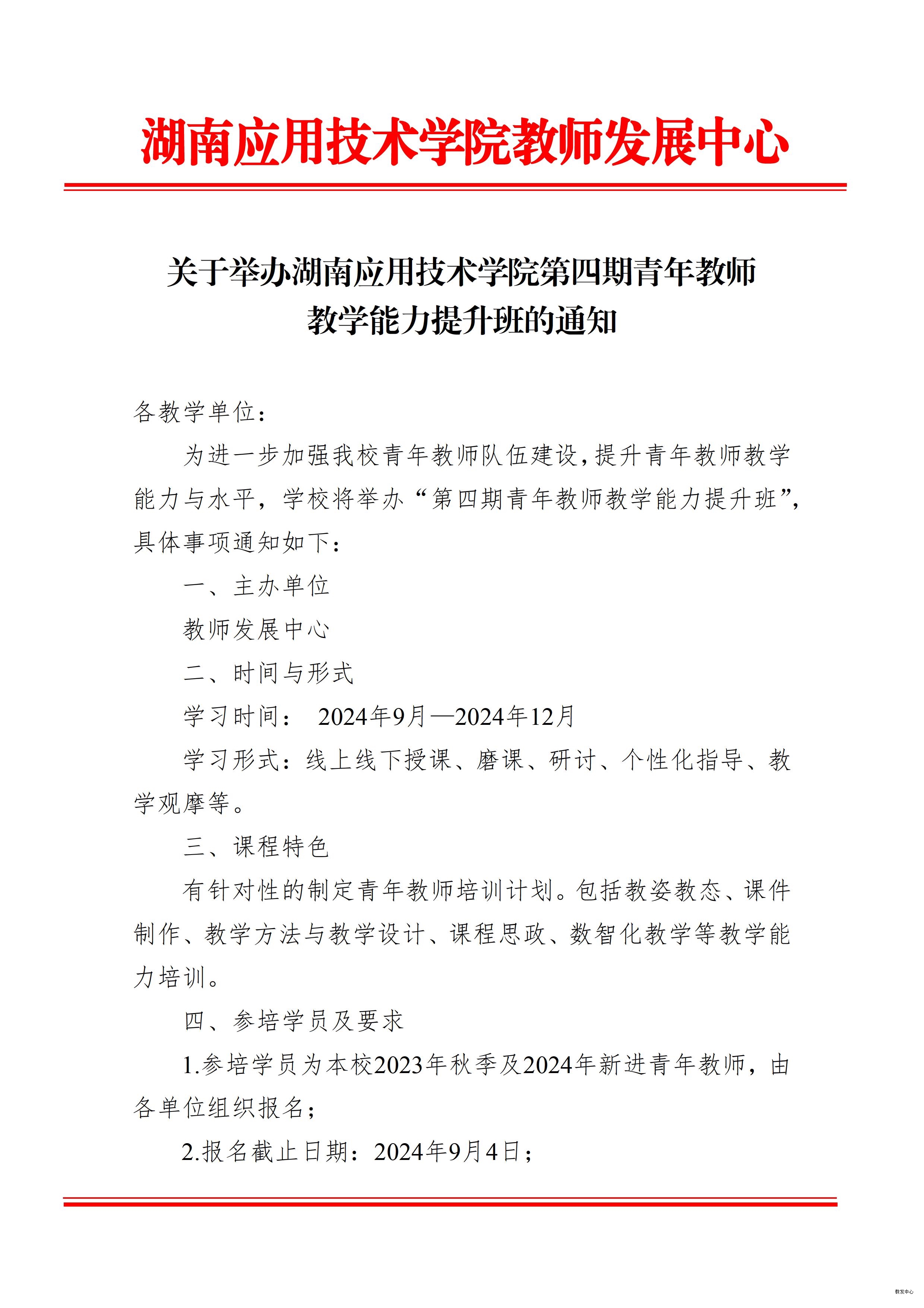 关于举办湖南应用技术学院第四期青年教师教学能力提升班通知