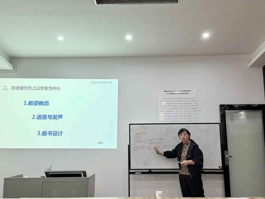 在教学研讨环节,参培教师们积极发言,就教学方法、教学技巧等方面进行了深入的交流和探讨。大家一致认为,青年教师应该注重创新教学方法,激发学生学习兴趣,同时也要不断提升自己的专业素养和教学能力。最后,中心主任符赛芬围绕“如何进行以学生为中心的教学设计”与在座的老师进行了分享。