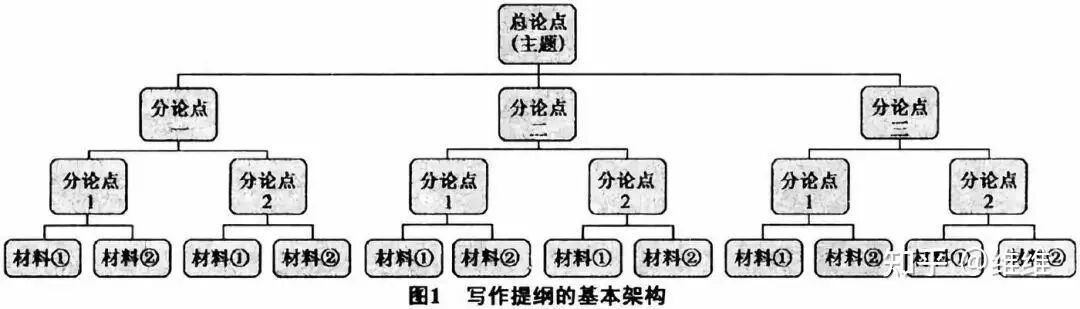 现以图1的写作提纲为例,表中第一个层面上的三个分论点平行并列地排列在文章的同一个层面上,它们从不同侧面、齐头并进地对总论点进行论证。如果这三个分论点被证明是成立的,它们便成为论据,证明总论点也是成立的。
